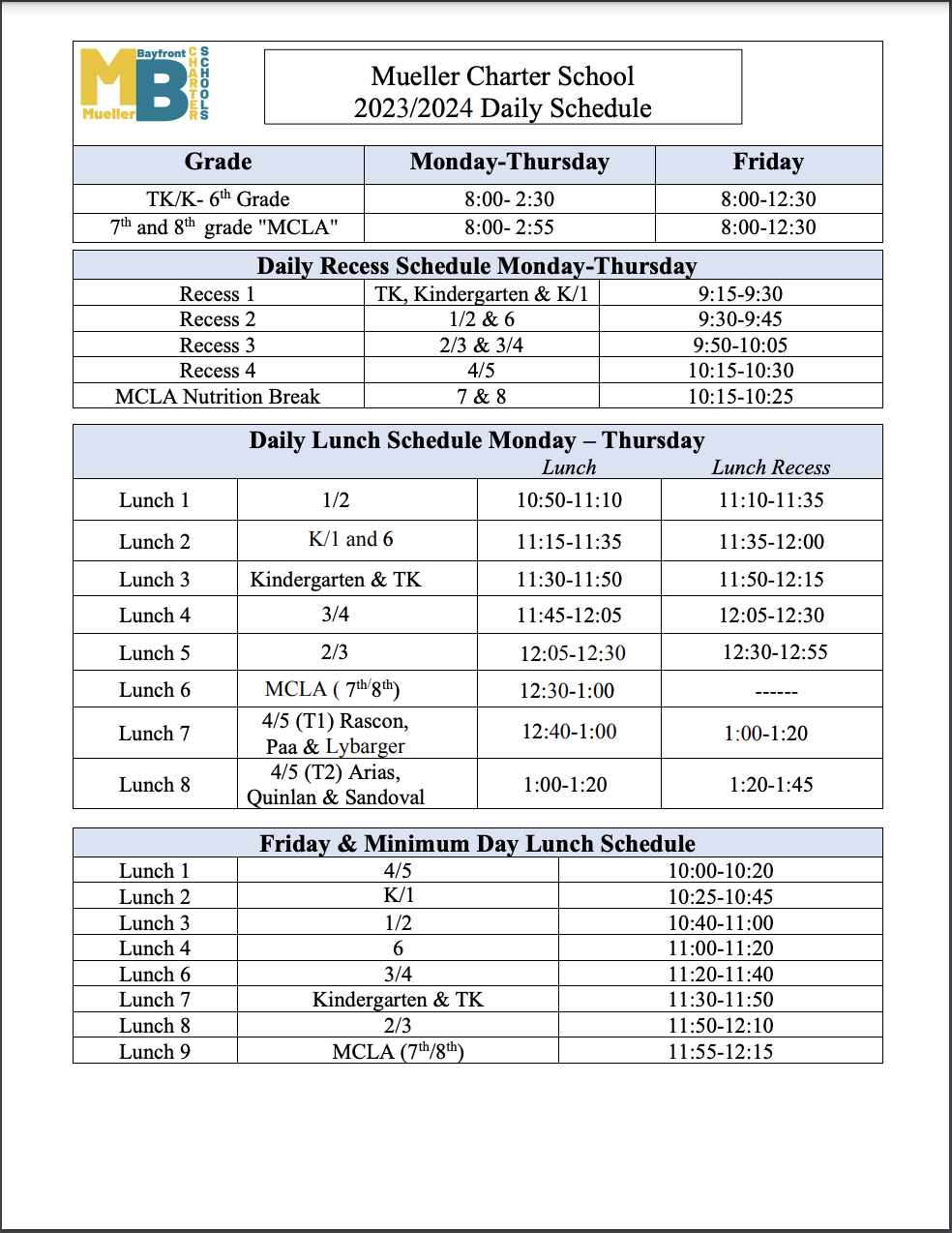 Lunch Schedule